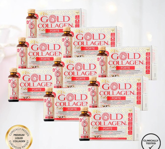 9 Gold Collagen FORTE geriamo kolageno dėžutės (pilnas 3 mėnesių kursas) už GERIAUSIĄ kainą! Gold Collagen FORTE yra populiariausias geriamas kolagenas. Jame esančios medžiagos padeda išlaikyti odos elastingumą, puikiai ją sudrėkiną, todėl oda tampa lygesnė, jau esamos raukšlės mažiau pastebimos. Taip pat šis geriamas kolagenas skirtas plaukams, nagams, gerina bendrą savijautą. Maža molekulinė masė užtikrina greitą ir lengvą veikliųjų medžiagų įsisąvinimą. Gold Collagen FORTE+40 yra vienas stipriausių Gold Collagen geriamo kolageno serijos produktų. Poveikis patvirtintas klinikiniais tyrimais. Itin malonaus skonio.